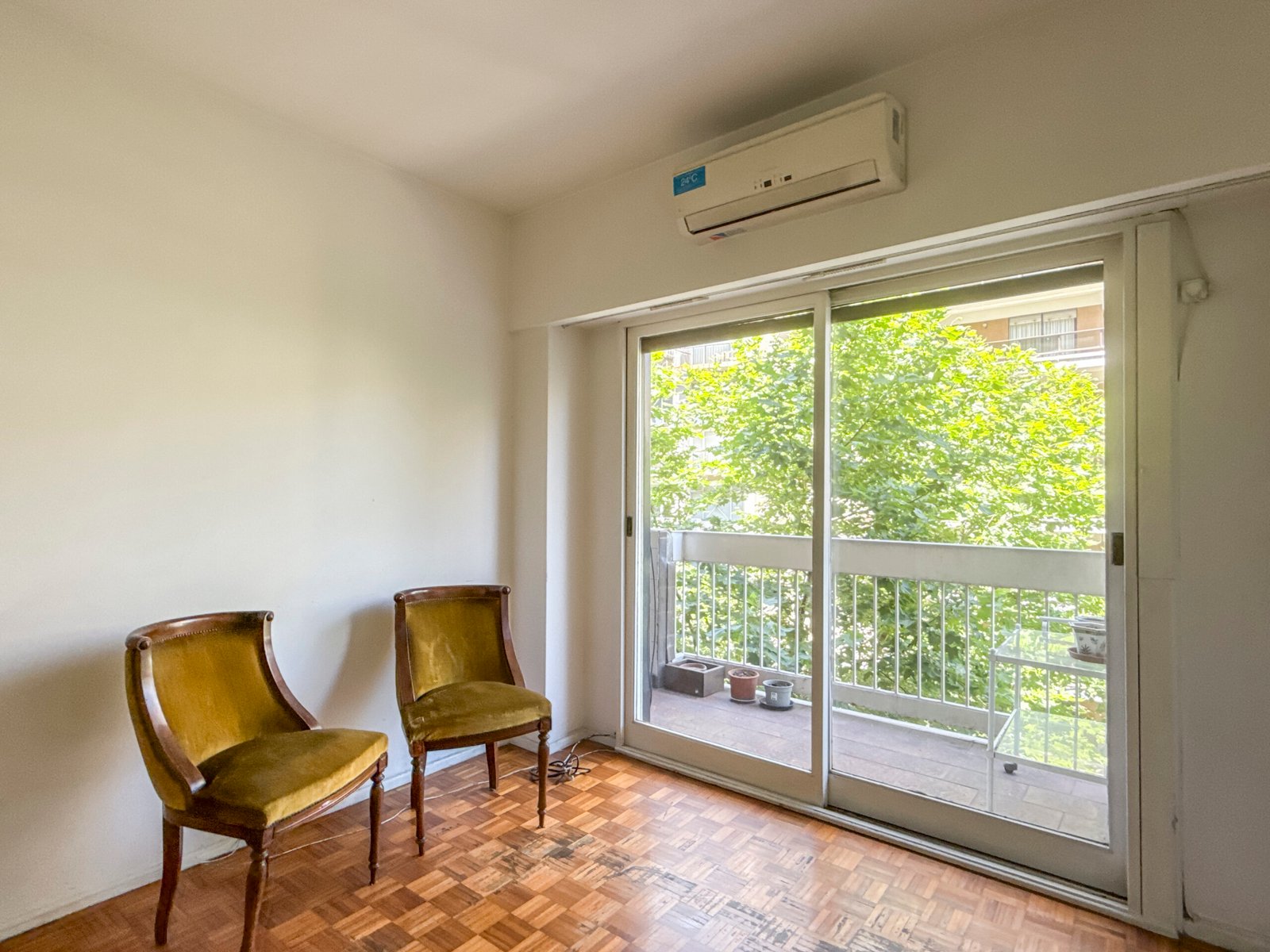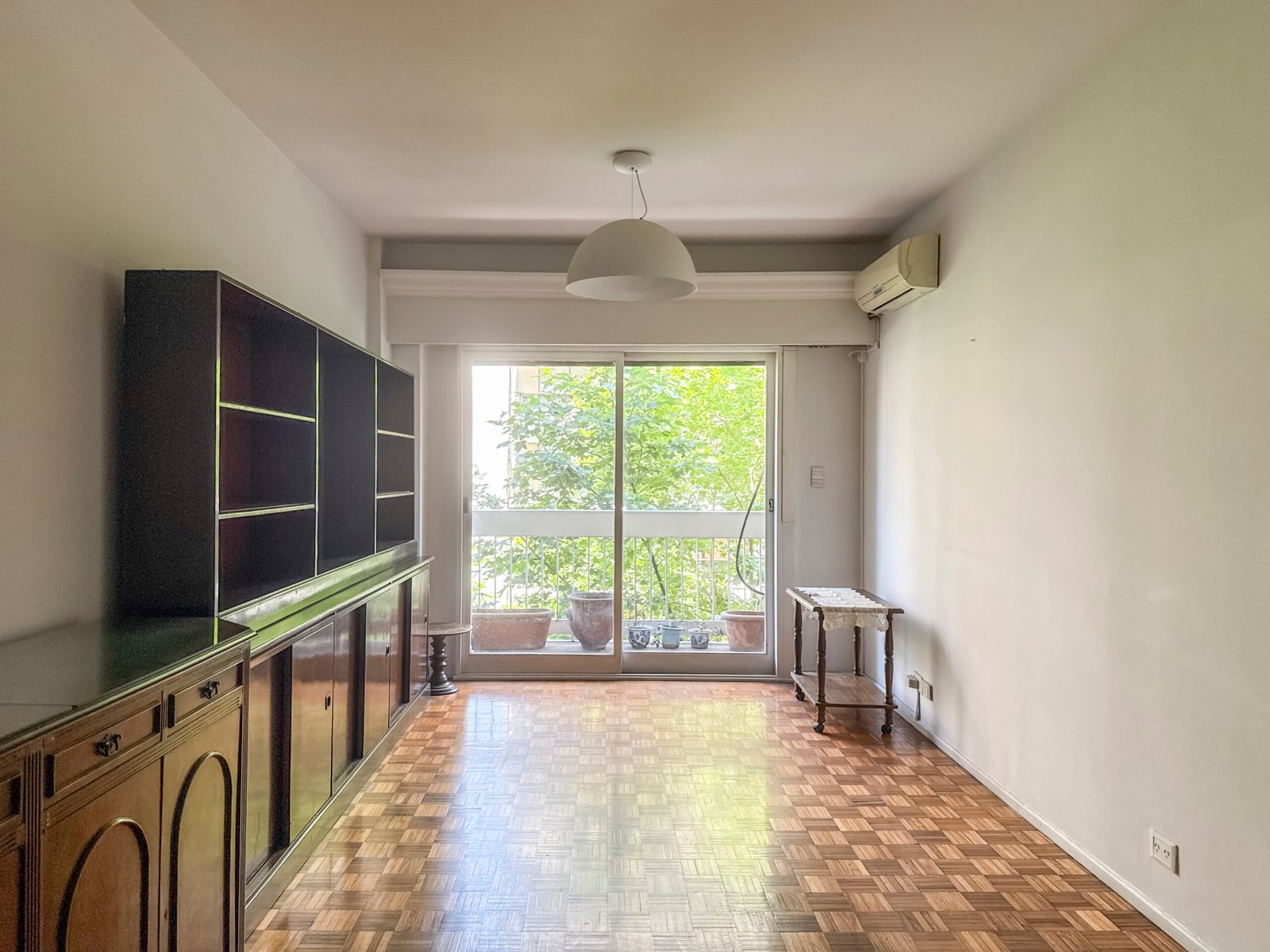 Living comedor con salida a balcón corrido con vista a verde, súper abierto y luminoso.