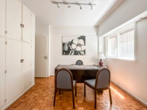 El tercer dormitorio o escritorio está muy bien ubicado dentro de la planta, ideal para adaptarlo a cada necesidad (home office, cuarto adicional, play, etc.).Además, la unidad cuenta con cochera y servicios individuales.
